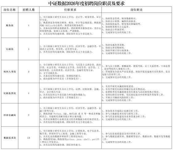 附件:中证数据2026年度招聘岗位职责及要求</b>